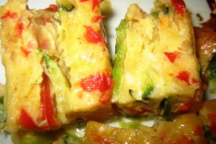- Malo ohlađeni tortino izvadite iz kalupa, narežite na debele kriške i ukrasite preostalim trakicama chillija.