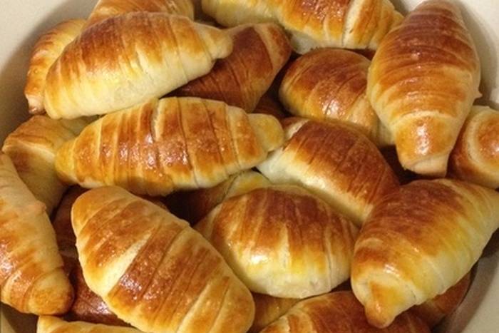Zamijesite u glatko tijesto, podijelite na 4 dijela i razvaljajte na 1/2 cm debljine. Narežite na trokutiće i oblikujte u kiflice.