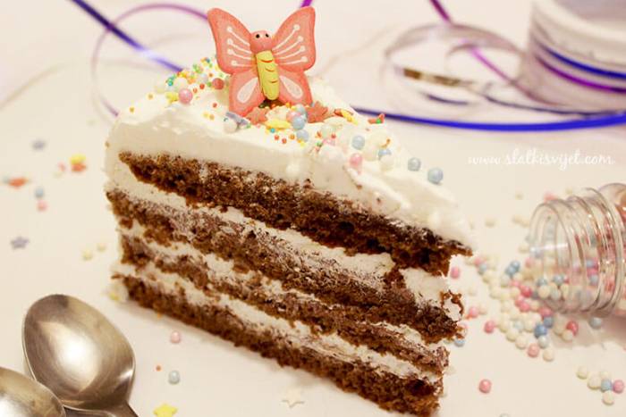 Sočan čokoladni biskvit, fina čokoladna krema i šlag… Jednostavna kombinacija za ukusnu čokoladnu tortu!