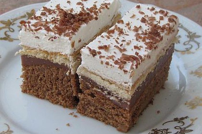 5. Kad se ohladi kolač premažite tučenim vrhnjem ili šlag kremom.