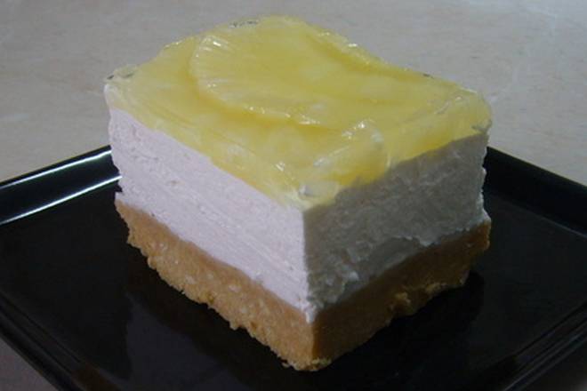 5. Preko kreme poslagati voće po izboru. Najjednostavnije je staviti breskve ili ananas iz limenke, a ako koristite svježe voće onda ga treba na odgovarajući način pripremiti.