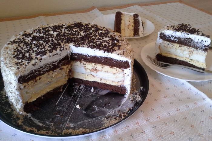 Koru prerezati na pola, pa složiti ovim redom: kora – krema – kora – krema.