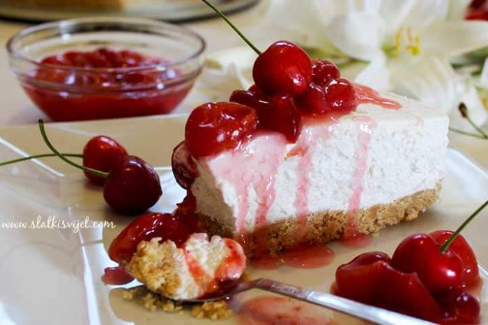 Lagana i prozračna torta bez pečenja, idealna za vruće ljetne dane koji su pred nama. Isprobajte ju s umakom od trešanja ili nekim drugim svježim voćem!