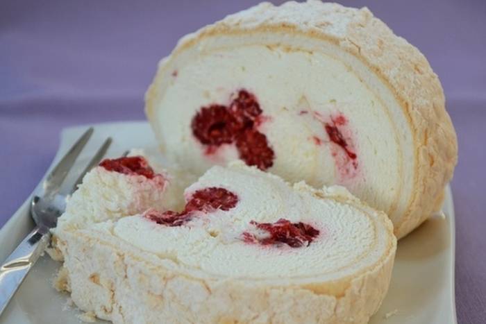 Kremasta rolada sa malinama, slično ledenom vjetru, ali u drugoj formi. Famozan desert, posebno dobar za vruće dane. Tražit će svi komad više!
