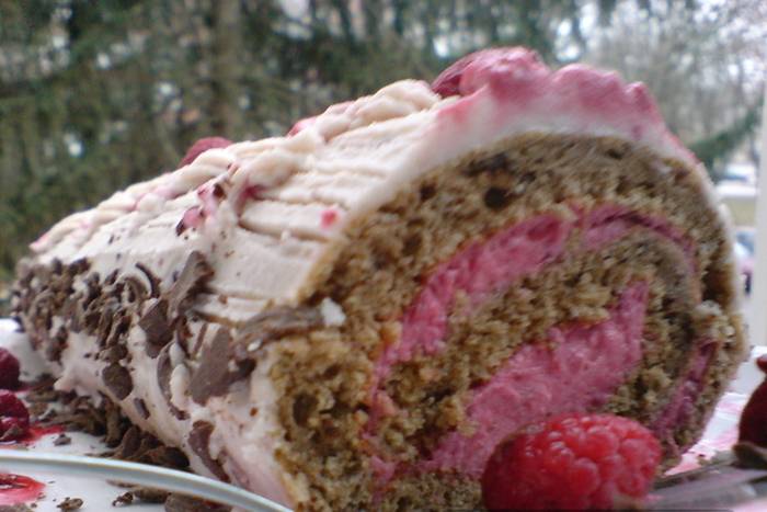 Kremasto, voćno, čokoladno… Tako se najkraće može opisati ova fina rolada od malina, mascarponea i čokolade.