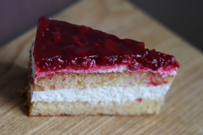 Biskvit prerežemo vodoravno, te jedan dio stavimo za dno torte, a oko njega učvrstimo obruč za torte, kako nam ne bi krema i preljev pobjegli 🙂