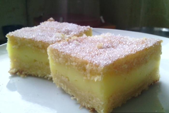 Izvaditi polupečen biskvit, premaziti pudingom pa izliti drugu polovinu smjese i peći dok kolac ne porumeni.