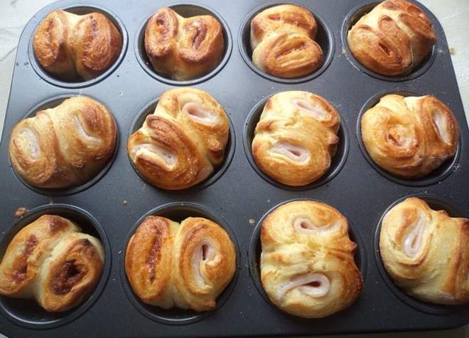 Štrudlu zatim režemo na komade dužine 2,5-3 cm i po dva takva komada stavljamo u kalup u kojem se peku mafini.